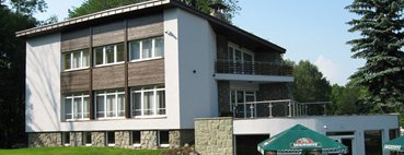 Penzion se nachází uprostřed přírodního parku-lesa, mezi řekou a mlýnským náhonem . Citlivě provedena rekonstrukce v roce 2007 včetně originálního řešení interiérů zachovala atmosféru funkcionalistické architektury 40 let z kterých objekt pochází a vyzvedla tak jeho jedinečnost. Objekt patří k nezapomenutelným dílům významných moravských architektů bratří Šlapetů o čemž svědčí i jeho prohlášení za kulturní památku.